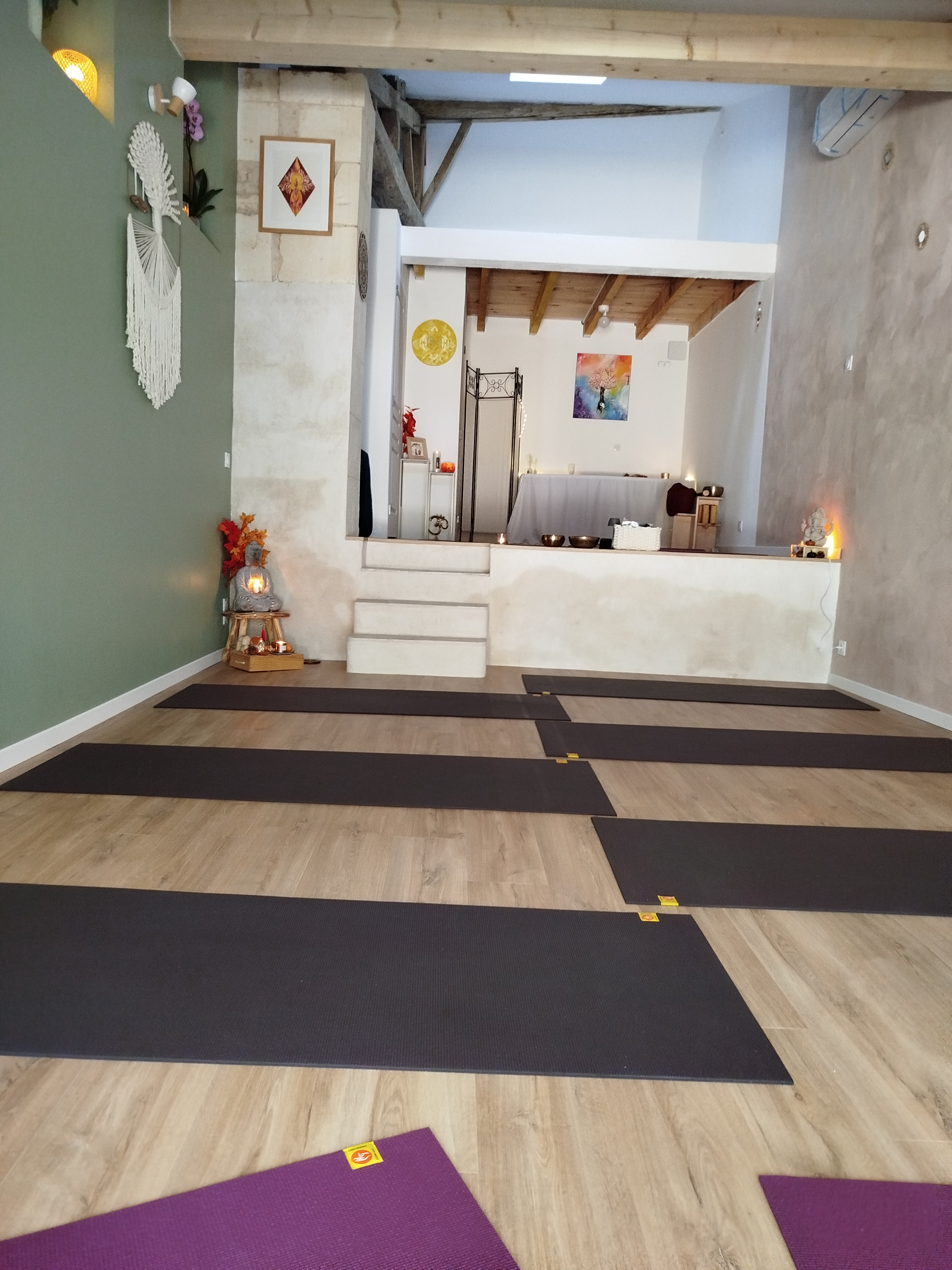La salle est préparée par mes soins, le ménage est fait chaque jour, et tapis désinfecté entre chaque séance, afin de vous permettre d'explorer votre pratique en toute sécurité et confort.